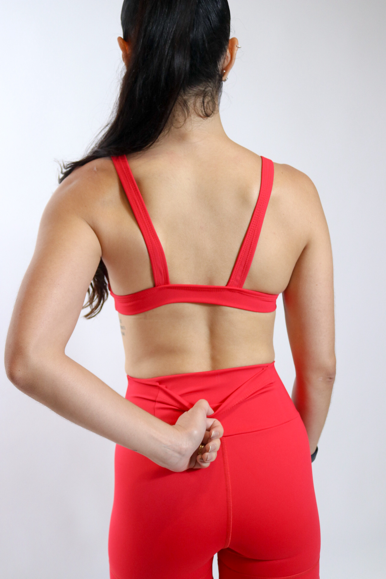Seu tecido com compressão oferece uma maior sensação de sustentação e maior aderência ao corpo sem apertar ou marcar.